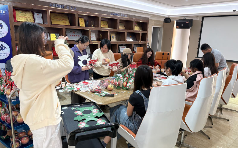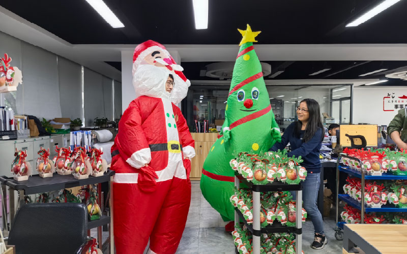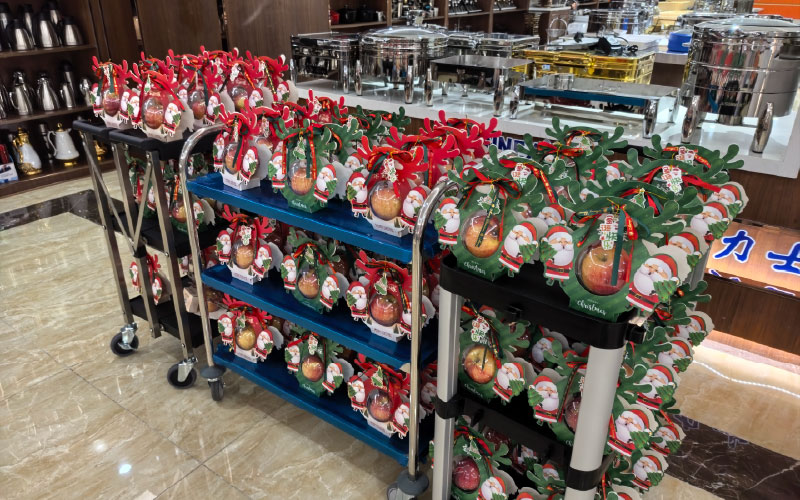 ఒక పాట పాడారు, "మేము మీకు క్రిస్మస్ శుభాకాంక్షలు, మేము మీకు క్రిస్మస్ శుభాకాంక్షలు తెలియజేస్తున్నాము....", అందమైన మరియు పెద్ద ఎరుపు యాపిల్ని కలిపి ప్యాక్ చేసారు శాంతి, ఆపై మా శాంతా క్లాజ్ మాకు సిబ్బందికి రెండు శాంతియుత ఆపిల్లను పంపారు రెట్టింపు ఆనందం, వావ్, పెద్ద కుటుంబంలా చాలా మధురమైనది.