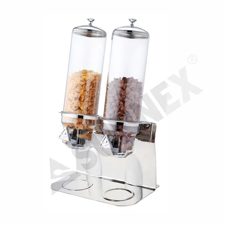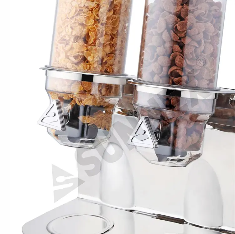పిసి కంటైనర్లతో ఈ స్టెయిన్లెస్ స్టీల్ బేస్ తృణధాన్యాల డిస్పెన్సర్లు ధృ dy నిర్మాణంగల స్టెయిన్లెస్ స్టీల్ బేస్ను కలిగి ఉన్నాయి, ఇది కేఫ్లు, హోటళ్ళు మరియు బఫే ప్రాంతాలు వంటి బిజీగా ఉన్న వాణిజ్య సెట్టింగులను తట్టుకునేలా నిర్మించబడింది, అదే సమయంలో సొగసైన మరియు వృత్తిపరమైన రూపాన్ని కొనసాగిస్తుంది. రెండు 4LTR PC కంటైనర్లతో అమర్చబడి, ఇది వివిధ రకాల తృణధాన్యాలు, గ్రానోలాస్ లేదా పొడి స్నాక్స్ కోసం తగినంత నిల్వ స్థలాన్ని అందిస్తుంది, వాటిని తాజాగా మరియు సులభంగా అందుబాటులో ఉంచుతుంది.
