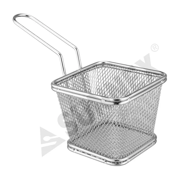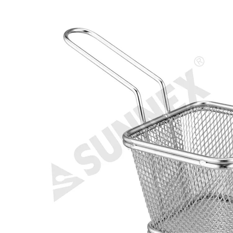 స్టెయిన్లెస్ స్టీల్ శంఖాకార స్క్వేర్ వైర్ ప్రెజెంటేషన్ బాస్కెట్ అనేది వారి ఆహార ప్రదర్శన ఆటను అప్గ్రేడ్ చేయాలని చూస్తున్న ఏదైనా స్థాపనకు ఆచరణాత్మక మరియు స్టైలిష్ ఎంపిక.
